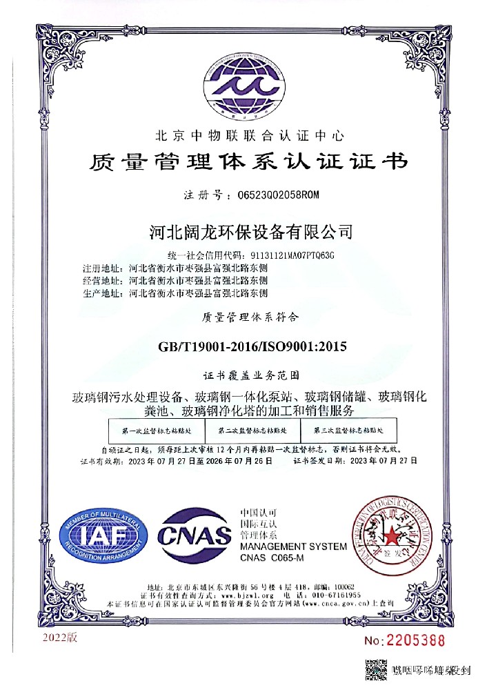 河北闊龍環保設備有限公司發祥于京畿之地、董子故里一一河北省棗強縣,位于環渤海經濟圈和環首都經濟圈的”黃金十字交叉處”,緊臨衡大公路、京九鐵路,距大廣高速10公里,地理位置優越。設備先進,技術力量雄厚,能夠獨立進行玻璃鋼環保系列產品的研發設計、生產和安裝維修服務,已發展成為華北研發實力強、技術力量雄厚的玻璃鋼環保企業。公司產品主要有       玻璃鋼水處理系列:玻璃鋼一體化泵站,玻璃鋼生活污水提升泵站,一體化污水處理設備,       玻璃鋼除臭系列:玻璃鋼生物除臭設備,玻璃鋼污水池蓋板;       玻璃鋼容器系列:立式罐、臥式罐、運輸罐、壓力罐、發酵罐、活性炭過濾罐、攪拌罐、加藥罐、玻璃鋼化糞池、現場纏繞大型罐等;       塔器系列:脫硫脫硝塔、氨氮塔、大型脫硫塔內外件、除塵塔、活性炭吸附塔、酸霧吸收塔、臭氧接觸培、氨氮吹脫塔、生物除臭培、高能離子塔、氯化氫吸收塔等;       玻璃鋼管道系列:夾砂管道、頂管、高壓管、電纜···【詳細介紹】